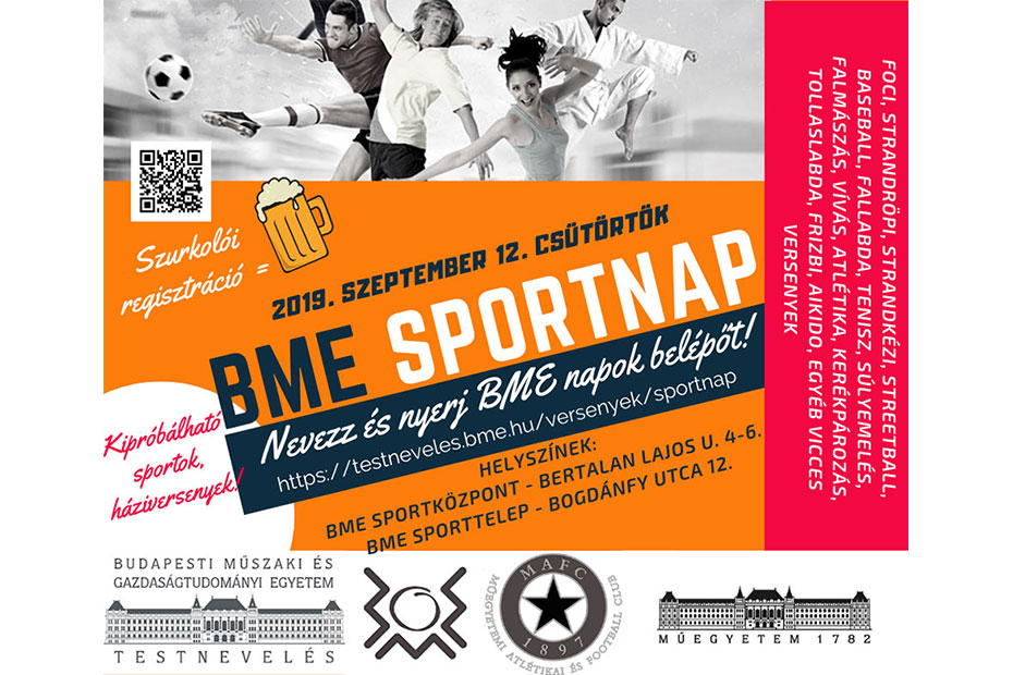 A BME Testnevelési Központ a MAFC és a BME EHK közös szervezésében megrendezésre kerül a BME Sportnap!! Gyere el te is! Vegyél részt a bajnokságokon!… BME Egyetemi Sportnap 2019